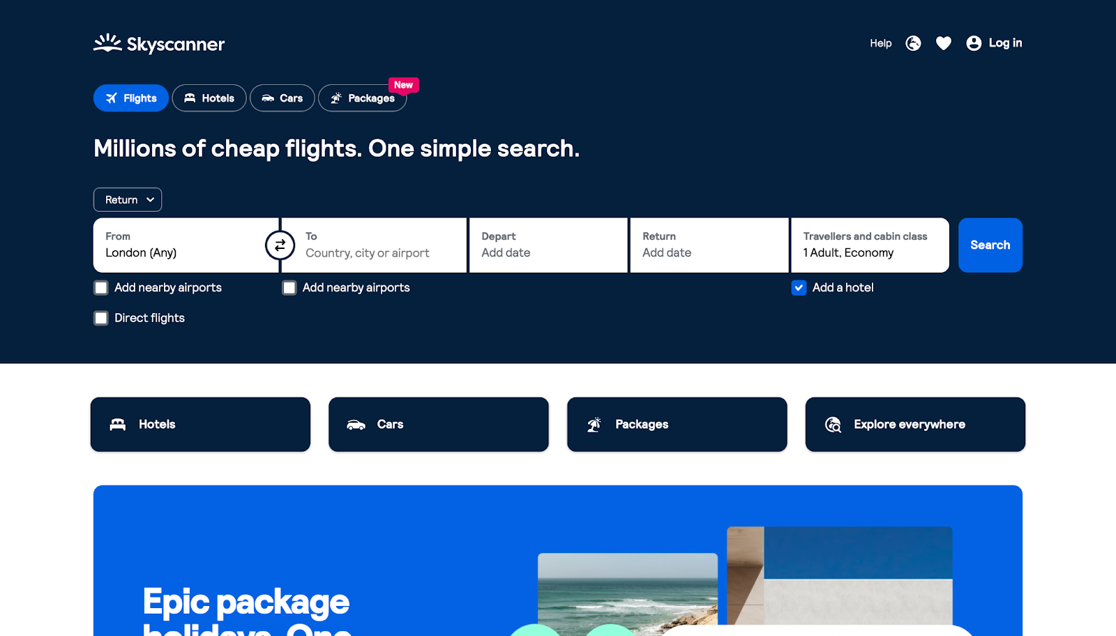 - Key features: Hacker fares, price forecast, flexible date searches, trip management.